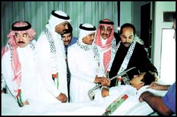 على مدى يومين متتاليين الاحد والاثنين الماضيين ولأربع ساعات يومياً يتواجد الفنانان محمد عبده وعبادي الجوهر في اربعة مستشفيات بجدة لزيارة المصابين في الانتفاضة الفلسطينية والذين يتلقون العلاج في مستشفيات المملكة.