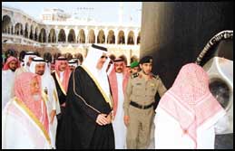 نيابة عن خادم الحرمين الشريفين الملك فهد بن عبدالعزيز تشرف صاحب السمو الملكي الأمير عبدالمجيد بن عبدالعزيز أمير منطقة مكة المكرمة يوم أمس بغسل الكعبة المشرفة.