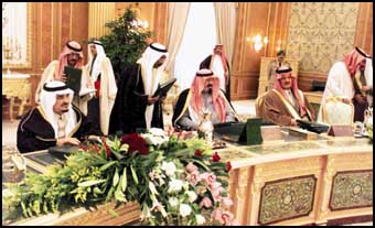 رأس خادم الحرمين الشريفين الملك فهد بن عبدالعزيز آل سعود حفظه الله الجلسة التي عقدها مجلس الوزراء بعد ظهر أمس الاثنين في قصر اليمامة بمدينة الرياض.