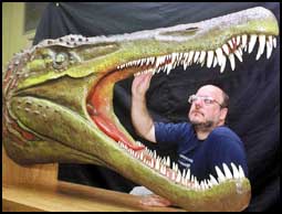 عالم الأحافير البرازيلي اليكس ازيفيدو يشاهد نموذجاً بالحجم الطبيعي لأحد أنواع الديناصورات بالمتحف الوطني بالبرازيل وسيقود فريقاً علمياً يتكون من 20 عالماً متخصصا بالاضافة الى طاقم تصوير متكامل وسيذهبون في رحلة طويلة عبر الأراضي البرازيلية بحثاً عن بقايا الديناصورات وآثار أقدامها.