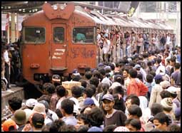 قطار مملوء بالمسافرين يغادر محطته في جاكرتا حاملاً آلاف الإندونيسيين الراغبين في العودة إلى مواطنهم الأصلية لحضور عيد الفطر مع الأهل والأقارب والاستمتاع معهم بهذه المناسبة الكريمة .