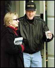 الرئيس الأمريكي بيل كلينتون وحرمه هيلاري يغادران البيت الأبيض في طريقهما الى منتجع كامب ديفيد بعد أن أصدر أوامره بتخصيص 300 مليون دولار كمعونات عاجلة لمساعدة الأمريكيين على التغلب على نفقات التدفئة المنزلية الباهظة.