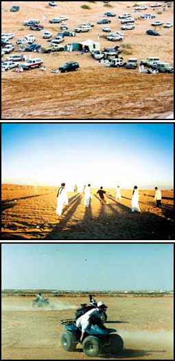 < كما التقت الجزيرة كذلك بمجموعة من العزاب في احد المخيمات المنتشرة في منطقة الثمامة التقيا بالمواطن خالد الثنيان حيث قال نحن نقيم مخيماً خصوصاًمع اعتدال الجو في فترة العيد ونحاول ان ننفس عن انفسنا والاستمتاع بعيد الفطر خاصة ان اغلب الاماكن مخصصة للعوائل سواء في المهرجانات المقامة بمناسبة العيد أو في أي موسم آخر,وفي عيد هذه السنة حاولنا ان نكسر القاعدة حيث كنا نتجمع في بيت أحد الأصدقاء والآن اتفقنا ان نقيم مخيما في الثمامة وذلك لتغيير الروتين الممل.