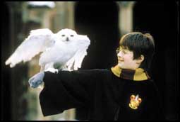 الممثل الصغير دانيال راد كليف يؤدي دور هاري بوتر حاملاً البومة (هيدويج) على ذراعه أثناء تصوير فيلم (هاري بوتر وحجر الساحر) وسيعرض الفيلم بعد الانتهاء من تصويره في نوفمبر من هذا العام,وجدير بالذكر أن رواية هذا الفيلم قد حصلت على مراكز متقدمة في مبيعاتها وكانت أكثر الكتب رواجاً بين الأطفال.