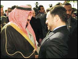 استقبل العاهل الأردني الملك عبدالله الثاني بن الحسين صاحب السمو الملكي الأمير سلطان بن عبدالعزيز النائب الثاني لرئيس مجلس الوزراء ووزير الدفاع والطيران والمفتش العام بعد ظهر أمس في مستهل زيارته الرسمية للمملكة الأردنية الهاشمية تلبية لدعوة من جلالة الملك عبدالله الثاني بن الحسين.