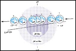 وأضاف انه تبعا لذلك ستقام صلاة الخسوف في جميع مناطق المملكة تقريبا الساعة التاسعة مساء و53 دقيقة وأشار الى انه بعد اجراء العمليات الحسابية ستكون ظروف الخسوف على أفق المملكة كما يلي: