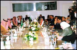 وعرض سموه الى التبادل التجاري بين البلدين معربا عن اسفه لما يلاحظه من تراجع كبير في مستواه وقال بلغ اجمالي قيمة التبادل التجاري بينهما خلال عام 1999م ما مقداره 2190 مليون ريال وهذا الأمر يمثل انخفاضا ما يوازي 500 مليون ريال عن عام 1998م وما مقداره 1000 مليون ريال من عام 1997م والسبب الرئيس في ذلك يعود بالطبع إلى الغاء الشق التجاري من الاتفاق الثنائي الذي كان معمولا به سابقا على ان يتبع ذلك فور توقيع اتفاقية ثنائية لإنشاء منطقة للتجارة الحرة بين البلدين وهذا ما لم يتم حتى الآن , وأشار سمو الأمير سعود الفيصل في هذا الصدد إلى بلوغ اجمالي التجارة الخارجية للمملكة من عام 1999م ما يقارب 300 ألف مليون ريال مبينا انه من خصائص اقتصادها انه لا يتضمن سياسات حمائية ولا تقديم اي نوع من اعانات الصادرات غير المسموح بها وفقا لأنظمة منظمة التجارة العالمية, وأكد سموه استعداد المملكة لإبرام اتفاقيات منطقة تجارة حرة مع أي بلد عربي شقيق لقناعتها ان ذلك الأمر يخدم المصالح العربية المشتركة في نهاية المطاف معربا عن أمله في ان تكون اولى تلك الاتفاقيات مع جمهورية مصر الشقيقة.
