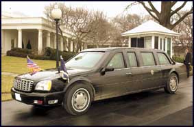 قامت قوات الحرس الخاصة بتوصيل هذه السيارة الرئاسية الخاصة للبيت الأبيض كي تكون تحت تصرف الرئيس بيل كلينتون على الرغم من انه سيترك البيت الأبيض خلال 5 أيام وهذه السيارة قد تبدو عادية اذا علمنا انها من طراز كاديلاك 2001 الا ان حراس الرئيس رفضوا وبشدة ان يذكروا التعديلات التي تمت في السيارة لتصبح هدية وداع من البيت الأبيض للرئيس كلينتون.