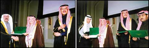 كرم معالي وزير البترول والثروة المعدنية المهندس علي النعيمي الشركات ورجال الاعمال الداعمين للمنتدى الدولي السابع للطاقة والذي تم افتتاحه من لدن سمو ولي العهد الامير عبدالله بن عبدالعزيز نائب رئيس مجلس الوزراء ورئيس الحرس الوطني وتم تمويله من قبل القطاع الخاص ممثلاً بالبنوك والشركات التي برز دورها في دعم المناسبات الوطنية في المحافل الدولية ويأتي ذلك نتاجاً لاهتمام الدولة بالقطاع الخاص ورعايتها له لجهوده الملموسة في تنمية الاقتصاد الوطني والمشاركة الفاعلة في مسيرة التنمية والبناء، وقد قامت الدولة بالاخذ على عاتقها بالاهتمام باصحاب المواقف الوطنية من اصحاب الشركات ورجال الاعمال وتكريمهم بالمناسبات الوطنية من ذلك قيام ولي العهد بتقليد رجال الاعمال المميزين بوسام الملك عبدالعزيز من الدرجة الاولى لهو خير دليل على تتويج رجال الاعمال والاهتمام بهم.