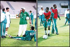 منح الجهاز الفني (للاخضر) والذي يقوده مدربنا الوطني ناصر الجوهر لاعبي المنتخب اجازة قصيرة لمدة يومين ابتداء من صبيحة الخميس وحتى اليوم الجمعة فيما سيستأنف لاعبو منتخبنا تدريباتهم غداً السبت حيث ستنتقل تدريبات (الاخضر) لملعب مدينة الامير سعود بن جلوي بالراكة وكانت الحصة التدريبية التي اجراها منتخبنا مساء أول أمس والذي يواصل استعداداته للتصفيات الاولية لكأس العالم قد شهدت خروج الكابتن محمد الخليوي لتأثره بألم بسيط وبعد معاينة الجهاز الطبي له اكد ان الخليوي ليس به ما يدعو للخوف وكل ما يشعر به هو الم بسيط في اسنانه ولذلك فضل الخروج من الحصة التدريبية والتي بدأها ناصر الجوهر كالمعتاد بتدريبات الاحماء حيث اجرى نجوم منتخبنا التدريبات الاحمائية تحت اشراف مدرب اللياقة والتي اشتملت على الجري حول الملعب وتم اجراء التدريبات السويدية واطالة العضلات بعدها وزع ناصر الجوهر اللاعبين لمجموعتين المجموعة الاولى اتخذت القمصان الخضراء وهم الخوجلي في حراسة المرمى، الحارثي، الخليوي، الدوخي، الصقري، الجمعان، سعد الدوسري، محمد نور، طلال المشعل، الحسن اليامي، مرزوق العتيبي، اما المجموعة الثانية والتي ارتدت القمصان الحمراء فقد ضمت تيسير نتيف، عبدالله سليمان، فوزي الشهري، حسين عبدالغني، محمد شلية، مناف ابو شقير، ابراهيم ماطر، عمر الغامدي، محمد الشلهوب، علي يزيد، عبيد الدوسري, فيما اجريت تدريبات خاصة للواكد ونواف التمياط تركزت على تمارين التقوية والتدريبات اللياقية.