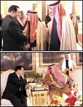 استقبل خادم الحرمين الشريفين الملك فهد بن عبدالعزيز آل سعود أمس أخاه فخامة الرئيس محمد حسني مبارك رئيس جمهورية مصر العربية الشقيقة والوفد المرافق له.
