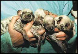 والمواليد الأربعة ثلاثة ذكور وأنثى يتمتعون بصحة جيدة رغم ولادتهم في الأسر حيث يعتبرون من الفصائل النادرة.
