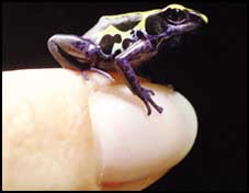 ضفدع السهام السام الذي يعيش في أمريكا الجنوبية يقف على إبهام أحد العاملين في حديقة تارونجا الأسترالية حيث نجح العلماء هناك ولأول مرة في حث هذا النوع النادر من الضفادع للتكاثر داخل الأسر,, وهذه الضفادع السامة تصل أحجامها عند البلوغ إلى 2,5سم وكان المحاربون في أمريكا الجنوبية يستخدمون سمومها على سهامهم وأسلحتهم، ولكن نظراً لأن الضفادع تعيش خارج بيئتها الطبيعية فإنها غير قادرة على إنتاج السموم داخل الحديقة الأسترالية وقد يكون ذلك من حسن حظ العاملين هناك.