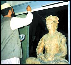 ويأتي هذا عقب اصدار الملا محمد عمر زعيم الحركة يوم الاثنين الماضي امرا بتحطيم كافة التماثيل الموجودة في البلاد.وقد صدر امر عمر، الصادر بعد اعلان علماء الدين والمحكمة العليا في افغانستان ان التماثيل لا تتفق والاسلام، دول العالم لقلقها على اثنين من تماثيل بوذا الضخمة في وسط افغانستان ادرجت على لائحة منظمة التربية والعلوم والثقافة )اليونسكو( آثارا دولية.وكان عمر قد قال في وقت سابق من هذا الاسبوع )نحن نبدي الاسلام على اي شيء آخر، مهمتي تطبيق تعاليمه التي تحظر الاصنام(.