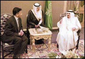 وقد عقد خادم الحرمين الشريفين الملك فهد بن عبدالعزيز ودولة الجنرال برويز مشرف الرئيس التنفيذي لجمهورية باكستان الاسلامية اجتماعا حضره من الجانب السعودي صاحب السمو الملكي الأمير عبدالعزيز بن فهد بن عبدالعزيز وزير الدولة وعضو مجلس الوزراء رئيس ديوان رئاسة مجلس الوزراء ومعالي رئيس الديوان الملكي الاستاذ محمد النويصر ومعالي المستشار الخاص لخادم الحرمين الشريفين الاستاذ ابراهيم العنقري ومعالي وزير الدولة وعضو مجلس الوزراء الدكتور عبدالعزيز الخويطر ومعالي وزير البترول والثروة المعدنية المهندس علي النعيمي ومعالي وزير المالية والاقتصاد الوطني الدكتور ابراهيم العساف ومعالي رئيس المكتب الخاص لخادم الحرمين الشريفين الاستاذ محمد السليمان وسفير المملكة لدى باكستان علي عسيري.