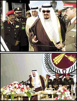 أيها الأخوة الكرام المجموعة الرابعة بقواتنا الفتية الدفاع الجوي.. تحية صادقة أنقلها لكم من خادم الحرمين الشريفين القائد الأعلى لجميع القوات العسكرية الملك فهد بن عبدالعزيز وولي عهده الأمين الأمير عبدالله بن عبدالعزيز، إنهم ينظرون إليكم أيها الأخوة نظرة خاصة بكم لأنكم موزعون في كل نواحي المملكة تحمون المصانع وتحمون المزارع وتحمون الأراضي كلها من أي اعتداء جوي مهما كان نوعه، لقد أثبتم مكانتكم في حرب الصحراء والتاريخ سيسجل لكم بأشياء ندركها جميعاً بما قمتم به من أعمال مجيدة ويدعمكم فيها ما بين جوانحكم الدين الحنيف والمحبة للوطن والطاعة لولي الأمر.