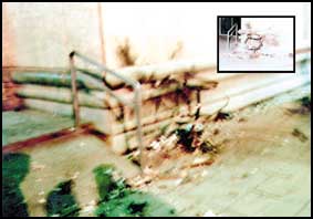 في احدى حاويات القمامة الواقعة في الجانب الايسر لبوابة المكتبة التي كانت تقل العبوة المتفجرة.