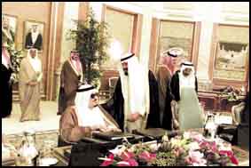 رأس خادم الحرمين الشريفين الملك فهد بن عبدالعزيز آل سعود حفظه الله الجلسة التي عقدها مجلس الوزراء بعد ظهر امس الاثنين في قصر السلام بمحافظة جدة.