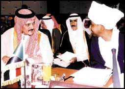 بدأت فى عمان قبل ظهر امس اجتماعات وزراء الخارجية العرب للاعداد للقمة العربية القادمة التى تبدأ فى عمان يوم الثلاثاء القادم ورأس وفد المملكة الى هذه الاجتماعات صاحب السمو الملكي الأمير سعود الفيصل وزير الخارجية. وألقى وزير الخارجية المصري عمرو موسى بصفة مصر رئيسة الدورة السابقة للجامعة العربية كلمة فى افتتاح الاجتماع اكد فيها اهمية الاجتماعات وقال ان الامل كبير فى ان يضع الاجتماع الصيغة النهائية لجدول اعمال القمة العربية التى ستعنى بتعزيز وتدعيم مسيرة التضامن والعمل العربي المشترك وبخاصة فى هذه المرحلة المهمة من تاريخ الامة العربية فى مواجهة التحديات الراهنة.