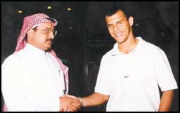 * كان بصحبته في مقر سكنه بأحد فنادق الرياض محترفا الهلال توليو ستوزا والكاتو اللذان قاما بزيارته واصطحباه معهما لتعريفه بالرياض.