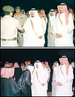 وكان في استقبال سموه لدى وصوله مطار قاعدة الرياض الجوية صاحب السمو الامير سعود بن محمد بن عبدالعزيز آل سعود وصاحب السمو الملكي الأمير سلمان بن عبدالعزيز امير منطقة الرياض وصاحب السمو الملكي الأمير خالد بن سلطان بن عبدالعزيز مساعد وزير الدفاع والطيران للشؤون العسكرية واصحاب السمو الملكي الامراء والمعالي الوزراء.