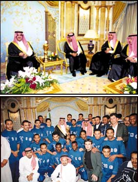 وقال سموه للاعبين: ان تمسككم بعقيدتكم السمحاء ليس بغريب عليكم فانتم تتشرفون بوجود الحرمين الشريفين في هذه البلاد الطاهرة والتي تزيدنا شرفا ورفعة وفخراً فيجب أن نكون قدوة وخير سفراء لبلادنا في كل المحافل العربية والاسلامية والعالمية وليس هذا الكلام لكم فقط بل لجميع زملائكم واخوانكم في الاندية السعودية.