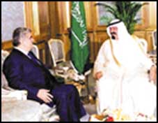 استقبل صاحب السمو الملكي الأمير عبدالله بن عبدالعزيز ولي العهد نائب رئيس مجلس الوزراء رئيس الحرس الوطني في مكتب سموه بالديوان الملكي في قصر السلام امس دولة السيد رفيق الحريري رئيس وزراء لبنان،