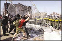 وتمكن عشرات الأشخاص من التسلل الى محيط المنطقة الخاضعة لحماية الشرطة التي سارعت الى استعادة السيطرة على السياج الشائك.