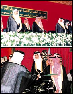 بعد ذلك تسلم سمو وزير الداخلية من رئيس المدارس هدية تذكارية عبارة عن مجموعة من اصدارات المدارس، وفي ختام الحفل قام سمو وزير الداخلية بتوزيع الشهادات على الخريجين الذين تشرفوا بالسلام على سموه والتقطت مع سموه الصور التذكارية،