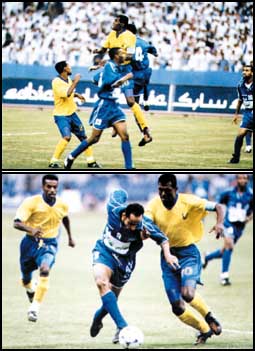 والأخطاء التي ارتكبها أفراد الفريق النصراوي وخاصة الجهاز الفني والذي اعتمد على خط هجوم غير فعال أبدا فالمهدي بن سليمان المحترف التونسي بالفريق النصراوي لم يكن فعالا أبدا ولم يشكل أي خطورة تذكر على المرمى الهلالي، أما النجم الصاعد عبدالرحمن البيشي فمن وجهة نظري الخاصة كانت المباراة كبيرة عليه ويحتاج اللاعب الى وقت كبير وخبرة في المباريات حتى يكون لاعباً أساسياً في مثل هذه المباراة، أما خط الوسط فقد كان من الناحية الهجومية سيئاً جدا وغاب جونيور عن جو اللقاء كليا ولم يكن ذلك اللاعب المؤثر وإخراجه من قبل المدرب أكبر دليل على عدم استفادة الفريق منه في اللقاء. والغريب بأن جونيور تألق مع النصر في عدة لقاءات ولكنه غاب في اللقاءات الحاسمة حيث غاب عن اللقاء النهائي في بطولة النخبة أمام الجيش السوري بعد حصوله على بطاقتين صفراء وغاب عن المباراة النهائية في البطولة العربية بعد أن كان لاعباً حاضرا غائباً حيث استسلم للرقابة التي فرضت عليه فلم يكن له دور في المباراة وها هو يغيب عن لقاء الإياب والذهاب في المربع الذهبي ولم يقدم في المباراتين سوى تسجيله لضربة الجزاء التي سجل منها هدف النصر الوحيد في اللقاء الأول وقد استطاع جونيور ان يسجل هدفا جيدا في مرمى الدعيع من خلال ضربة الجزاء حيث وضعها بكل دقة داخل المرمى الهلالي والمطلوب من الجهاز الفني الاستفادة من الأخطاء السابقة سواء في الهجوم أو الوسط أو حتى الدفاع فاللقاء القادم لا ينفع فيه سوى الفوز واللعب بطريقة دفاعية لن تجلب البطولة أبدا، فالجميع شاهد الضغط الهلالي الذي تعرض له مرمى الخوجلي والذي كان موفقاً في المباراة واستطاع أن ينقذ فريقه من أكثر من هدف محقق وبروز الخوجلي وتوفيقه ليس شرطا في مباراة الاتحاد القادمة، وباختصار الفريق النصراوي أجاد في الدفاع ولكن ما زال يحتاج الى البحث عن الهجوم لتسجيل الأهداف التي هي من تحسم البطولات.