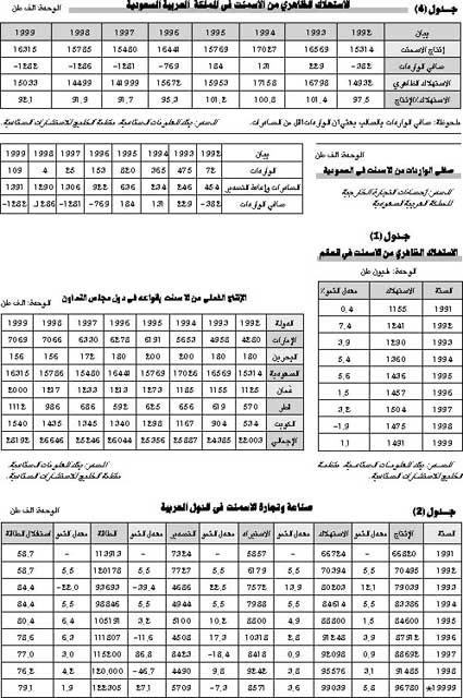 أما إنتاج الاسمنت في الدول العربية فقد شهد ارتفاعاً ملحوظاً خلال الفترة 1991م 1999، حيث ارتفع الإنتاج من 8، 66 مليون طن عام 1991م إلى 8، 96 مليون طن عام 1999م بنسبة زيادة تصل إلى حوالي 9، 44% خلال الفترة كما يتضح من بيانات الجدول )2(،