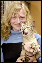 سناء روسل الموظفة بمؤسسة لتربية الحيوانات في بريطانيا تحمل قطة تم العثور عليها داخل حاوية بإحدى السفن القادمة من الشرق الأوسط الى مدينة برمنجهام في بريطانيا. ولم تتناول هذه القطة أي نوع من الطعام خلال الرحلة الطويلة التي تستغرق عادة عدة أسابيع واكتفت بلعق الماء المتكثف على جدران الحاوية.