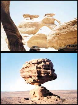 المتأمل لهذه الصخرة وسط الصحراء يتخيل ولأول وهلة وكأنها زرعت زراعة وكيف أثرت بها عوامل التعرية، كما أن المتمعن للصورة يرى وكأنها جمجمة إنسان. سبحان الله..