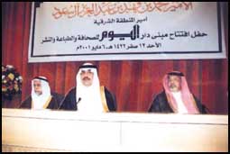 وقام سموه بعد قص الشريط بجولة في مرافق وأقسام الجريدة الفنية والتحريرية عقب ذلك بدأ الحفل الخطابي بهذه المناسبة.