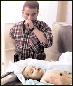 وقال طبيب في مستشفى ناصر بخان يونس لرويترز ان شظية اخترقت بطن الرضيعة وخرجت من ظهرها وقال الطبيب ان الرضيعة قتلت في منزلها اثناء القصف.