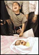 يشار الى ان الطفلة الرضيعة ايمان حجو التي قتلت اول امس كانت مع والدتها في زيارة الى بيت جدتها في مخيم خان يونس وهي تسكن في مخيم دير البلح للاجئين الفلسطينيين وسط قطاع غزة،