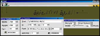 4- Text properties : الخطوط ويمكنك اختيار نوع الخط وكما سبق وذكرنا فإن البرنامج لا يدعم اللغة العربية مباشرة بل يحتاج الى برامج وسيطة مثل الرسام والوسيط ويمكنك أيضا تحديد حجم الخط ولونه.