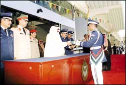 رعى صاحب السمو الملكي الأمير سلطان بن عبدالعزيز النائب الثاني لرئيس مجلس الوزراء وزير الدفاع والطيران والمفتش العام امس حفل تخريج الدفعة الستين من طلبة كلية الملك فيصل الجوية.