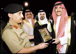 ثم قدم سموه درع الاتحاد السعودي للفروسية الى مدير الأمن العام الفريق اسعد بن عبدالكريم الفريح كما قدم درعا مماثلا لمدير ادارة التدريب بالامن العام العميد حسن بن محمد العسيري ثم كرم سموه اللجان المنظمة للبطولة.