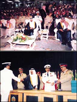 رعى صاحب السمو الملكي الأمير سلطان بن عبدالعزيز النائب الثاني لرئيس مجلس الوزراء ووزير الدفاع والطيران والمفتش العام مساء أمس حفل تخريج دورة القيادة والأركان السابعة والعشرين حيث كان في استقبال سموه لدى وصوله مقر الكلية صاحب السمو الملكي الأمير خالد بن سلطان بن عبدالعزيز مساعد وزير الدفاع والطيران للشؤون العسكرية ومعالي الفريق أول صالح المحيا رئيس هيئة الأركان العامة وقائد كلية القيادة والأركان اللواء بحري الركن شامي بن محمد الظاهري وعدد من أركانات الكلية وقد عزف السلام الملكي ثم بدأ الحفل بالقرآن الكريم.