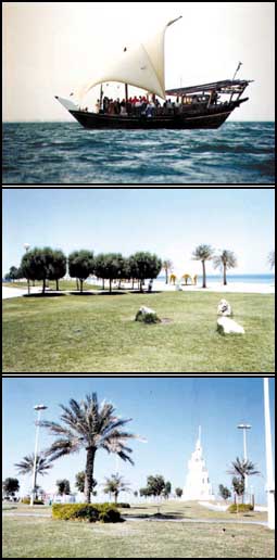 وهناك مساحات مغطاة بمظلات من الفيبر جلاس مخصصة للاستراحة وعددها «24» مظلة وهناك العديد من الممرات الخرسانية لهواة المشي ومتوفر بالكورنيش عدد «4» دورات للمياه وقامت البلدية هذه الأيام بتكثيف أعمال الصيانة للأشجار والمسطحات الخضراء وزيادة كمية غرس الزهور.