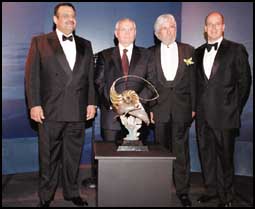 سلم صاحب السمو الملكي الامير خالد بن سلطان بن عبدالعزيز مساعد وزير الدفاع والطيران والمفتش العام للشؤون العسكرية ميخائيل غورباتشوف الرئيس السابق لما كان يعرف بالاتحاد السوفيتى الجائزة السنوية للمحافظةعلى البحار «حامي البحار» المقدمة من مؤسسة خالد بن سلطان للحفاظ على الحياة الفطرية في المحيطات.
