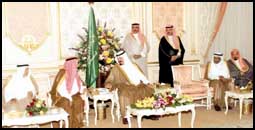 استقبل صاحب السمو الملكي الأمير عبدالله بن عبدالعزيز ولي العهد ونائب رئيس مجلس الوزراء ورئيس الحرس الوطني في الديوان الملكي بقصر السلام بجدة امس أصحاب السمو الملكي الأمراء وأصحاب المعالي الوزراء وكبار المسؤولين وجمعا من المواطنين وكبار قادة وضباط الحرس الملكي يتقدمهم قائد الحرس الملكي الفريق أول ركن عبدالله بن علي النملة الذين قدموا للسلام على سمو ولي العهد وتهنئته بالعودة سالما الى أرض الوطن من خارج المملكة بعد أن قام سموه بزيارات لعدد من الدول العربية والاوروبية.