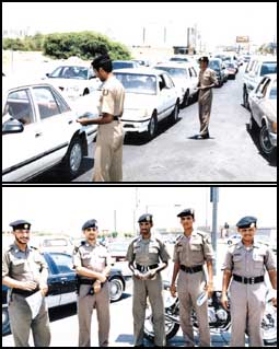 انطلقت صباح أمس احدى الحملات التوعوية التي تنفذها ادارة مرور الرياض ضمن حملاتها التوعوية وانتشر أفراد الدوريات في عدد من الميادين والتقاطعات وقاموا بتوزيع المنشورات التوعوية في اشارات المرور وإرشاد السائقين حول السبل المثالية للقيادة. وكشفت أحدث التقارير المرورية عن انخفاض احصائيات الحوادث المرورية وتزايد الالتزام بالإشارات المرورية وذلك نتيجة انتشار رجال المرور في التقاطعات والميادين. اضافة الى ثبوت جدوى تطبيق المخالفات السرية. وأشرف على عملية انطلاق حملة التوعية صباح أمس المقدم خالد الحواسي رئيس شعبة السير بمرور الرياض. من جهته أوضح الملازم عبد الله بن سعيد الجابر أحد الضباط المشرفين على تنظيم الحملة عن تسجيل ما يقارب ال16967 مخالفة مرورية خلال اسبوع الحملة، شملت )سرعة، عكس سير، عدم ربط الحزام، وقوف ممنوع(. وأوضح الملازم الجابر الى قيام أفراد الدوريات بتوزيع المطبوعات والمنشورات التوعوية على السائقين وتوضيح مفاهيم القيادة الصحيحة لهم.