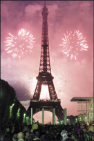 الالعاب النارية تضيء سماء باريس خلال الاحتفالات التي بدأت في ذكرى اليوم الوطني الفرنسي او ما يسمى بيوم الباستيل وقد احتشد الالاف من السياح لمشاهدة المسيرة العسكرية الشهيرة التي تقام لهذه المناسبة.