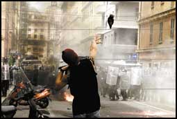 ومع خروج ألوف المحتجين المناهضين للعولمة في اول مسيرة من سلسلة مسيرات مزمعة تسببت في فرض اقوى اجراءات امنية على الاطلاق حذرت ايطاليا من انها ستتعامل بصرامة مع أية عنف يهدف الى تعطيل المحادثات.