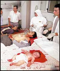 وقالت المصادر: ان عزمي الشماس (24 عاما) اصيب بعيار ناري في رأسه وانه يرقد في غرفة العناية المكثفة في حال الخطر.
