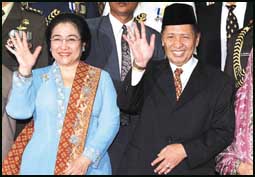 واختار المجلس الاعلى للبرلمان امس حمزة حاج زعيم حزب التنمية المتحدالاسلامي نائبا للرئيسة الجديدة ميجاواتي سوكارنوبوتري وعلى الفور استبعدت احتمالات ان يتسبب ما قام به في عام 1999 عندما وقف ضد ترشيح سوكارنوبوتري للرئاسة في زعزعة الحكومة المقبلة للرئيسة.