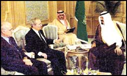 استقبل صاحب السمو الملكي الامير عبدالله بن عبدالعزيز ولي العهد ونائب رئيس مجلس الوزراء ورئيس الحرس الوطني في مكتبه بالديوان الملكي في قصر السلام بجدة امس دولة رئيس وزراء الجمهورية اللبنانية رفيق الحريري.