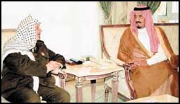 استقبل صاحب السمو الملكي الأمير سلمان بن عبدالعزيز أمير منطقة الرياض بقصر سموه بجدة أمس فخامة الرئيس الفلسطيني ياسر عرفات الذي قدم لسموه تعازيه الشخصية وتعازي الشعب الفلسطيني في وفاة صاحب السمو الملكي الأمير فهد بن سلمان بن عبدالعزيز رحمه الله.